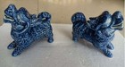 Chinese Old Pair Blue And White Colored Porcelain Kylin Statues