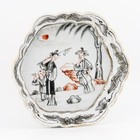 Chinese Grisaille Porcelain Gilt Teapot Stand Lady & Boy Export Qianlong 18th C