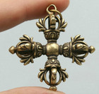 1.8" Nepal Tibetan Buddhism Bronze Cross Dorje Vajra Xiangmo-chu Amulet Pendant