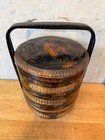 Asian Chinese Wedding Storage Basket 3 Tiers Wood Wicker Carved Vintage R.o.c.