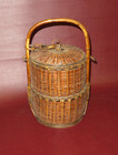 Vintage 14.5" Tall Chinese 2-tiered Lidded Hand Woven Wicker Wedding Basket