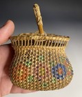 Antique Chinese Export Rice Straw Basket Floral Painted Hand Woven Miniature