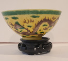 Antique Porcelain Chinese Bowl Dragons Yellow Marked Double Ring