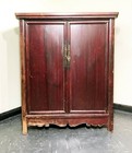 Antique Chinese Red Laquer Wedding Cabinet Armoire With Brass Accents