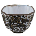 Antique Chinese Canton Enamel Tea Cup Dragon Black White Gold Qianlong Period