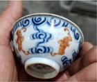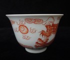Antique Chinese Hand Painting Red Underglaze Dragon Porcelain Cup "yongzheng"