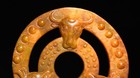 9cm Chinese Dynasty Old Jade Carve Feng Shui Niu Cow Ox Head Circle Yubi Yu Bi