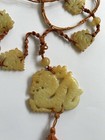 Chinese Jadeite Jade Dragon Pendant Silk Cord Necklace Double Carved Mid Century