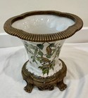 Chinese Canton Enamel On Metal Trinket Dish Floral Green 5.5" Cherry Blossom