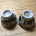 Antique Chinese Canton Pair Of Double Handle Broth Cups 19th C. Qing Blue Pagoda