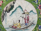 Oriental Asian Scene Man Boat Lake Mountains Enamel Hand Painted Plate 6"