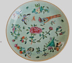 Qing Dynasty Famille Rose Celadon Antique Handpainted Collectible Plate