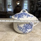 Antique White And Blue Chamber Pot With Lid Floral Design