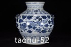 10.2"china Porcelain Yuan Dynasty Blue And White Lotus Pattern Beast Head Jar