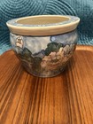 Vintage Chinese Ceramic Flower Pot Round W Blue Scenery 8 Large Pink Flower