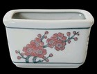 Vintage Light Celadon Porcelain Bonsai Pot Cherry Blossom & Bamboo 3" Tall Ec