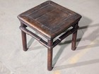 Vintage Chinese Square Low Side Table Stained Elm - Side Lattice Panels 20x16x16