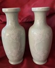 Chinese Green Celadon 2 Mirror Images Vases White Paste Jingdezhen Zhi Republic