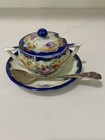 Vintage Hand-painted Nippon Porcelain Sugar Bowl From Early 20th Century & Spoon