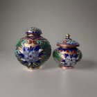 Vntg Chinese Cloisonne Enamel Caddy Jars 2 1/4” & 1.5" Collectable Set Of 2