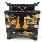 Antique Japanese Jewelry Box Black Lacquer With Gold Opal 5 Drawer Chest Read*