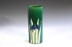 Antique Awaji Pottery Arts & Crafts Incised Iris Japanese Brush Pot Vase
