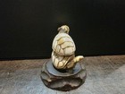 Old Japanese Boxwood Hand Carved Jin Chan Figure Frog Statue Netsuke Collectable