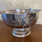 Silver On Copper Punch Bowl Lion Head Floral Leaves Large Heavy 1900 Victorian
