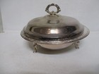 Pyrex Silver Plate Ornate Footed Covered Glass Serving Bowl