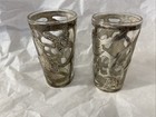 Pair Of Antique Sterling Silver Overlay & Etched 8oz Mint Julep Cups Or Tumblers