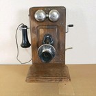 Antique Oak Wall Mount Crank Telephone Kellogg Early 1900’s Art Deco