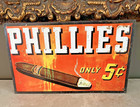 Antique 1930's 40's Phillies 5 Cent Cigar Tin Advertising Sign / Embossed