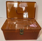 2 Wilson Wil Hold Sewing Boxes Red Amber Plastic Notions Trays Scissors 132