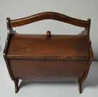 Vtg Primitive Firkin Sugar Bucket Sewing Basket Wood Barrell Sewing Kit
