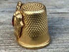 Vtg Goldtone Cherubs & Red Stone Jeweled Sewing Thimble