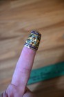 Vintage Cloisonné Enamel Thimble Brass Flower Motif