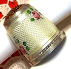 Excellent Vintage Sterling Thimble Yellow Glass Top Floral Size 10 - Lovely!