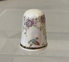 Iridescent Floral Bird Fine Bone China England Vintage Thimble Gold Trim