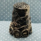 Antique Embossed Sterling Silver Sewing Thimble, House, Church & Ghost, Hallmark