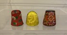 Lot Of 3 Vintage Decorative Thimbles Wood Japan Paper Mache Floral Stripe