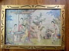 ⭕️ Vintage Reverse Glass Painting Asian Scene 23"×17" Japanese Style