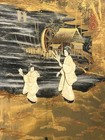 Japanese-style (sumi-e) Watercolor Gouache Painting Of A Hanging Monkey Signed