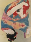 Antique Signed Japanese Painting Geisha Block Print Silk Chinese Asian Art Vtg