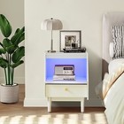 Led Bedside Table With Drawer Storage Nightstand Flip Hidden Door White