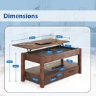 2 Drawer Lift Top Coffee Table With Hidden Compartment & Storage Shelves Rustic