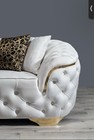 Luxe White Cream Gold 2pc Sofa Loveseat Set Velvet Fabric, Modern Living Room