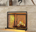Flat Fireplace Screen With Hinged Doors Handcrafted Wrought Iron Classical Scrol