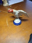 Case Tractor Eagle On Globe Silver Metal Chrome Emblem 4 1/4" On Wooden Stand