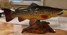 Bob Berry Signed Brown Trout Wood Carving With Burl Wood Base 1987