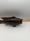 Vtg Ironwood Carved Lake Bass Figurine Smooth Dark Wood 13” Fishing Cabin Decor
